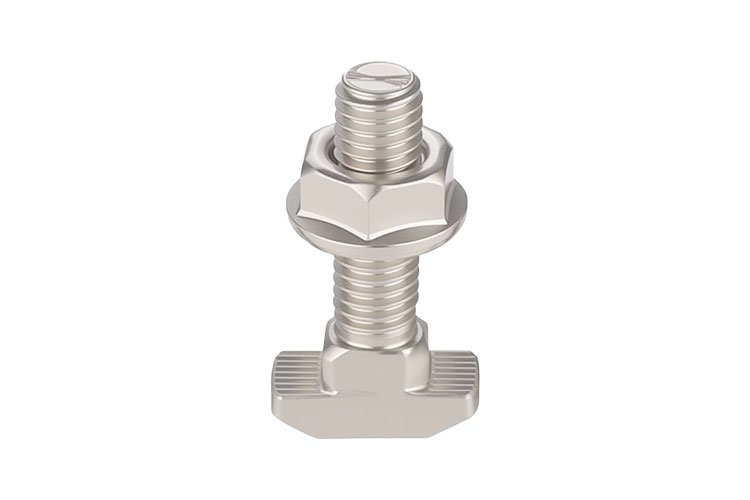 T bolts(or T-slot bolts, hammer-head bolts), resemble the letter “T” and consist of a head and a threaded section. They can be inserted into a T-slot for automatic positioning and locking. Generally, only the nut needs to be loosened without removing the bolt, making it suitable for securing workpieces, tools, fixtures, machine tools, and profiles in place. T-bolts are made of carbon steel, stainless steel, or alloy steel, with a wide range of specifications available, from M4 to M48.